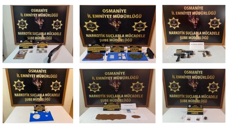 İl Emniyet Müdürlüğünün açıklamasına göre, 8 -14 Ağustos'ta kent merkezi ile Kadirli ve Düziçi ilçelerinde uyuşturucu satıcılarına yönelik operasyonlar düzenlendi.