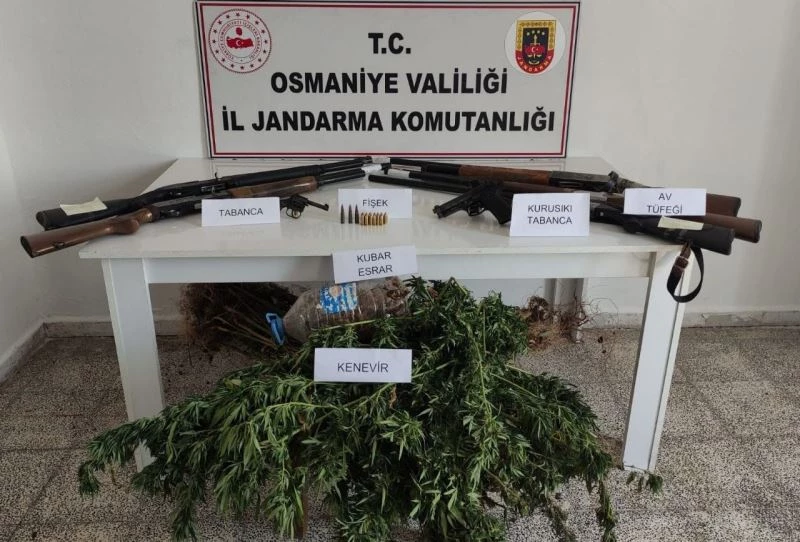 Osmaniye’nin Kadirli ilçesinde düzenlenen uyuşturucu operasyonlarında 1 kilo esrar, 150 kök kenevir ile 7 adet silah ele geçirildi.