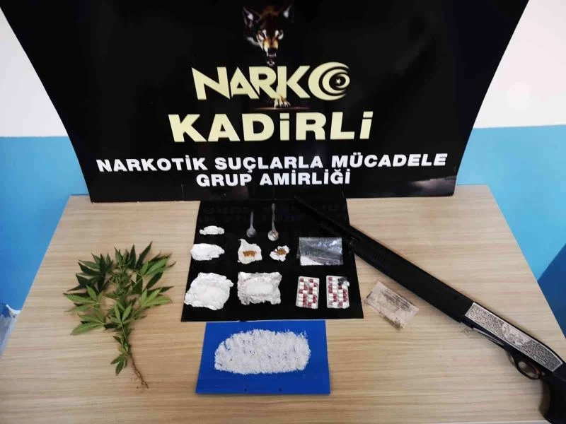 Operasyonda, arama yapılan adreslerde 72 gram metamfetamin, 26 adet sentetik ecza, 2,5 gram bonzai, 1 gram esrar maddesi, 1 adet Hint keneviri ile 1 adet ruhsatsız pompalı tüfek ele geçirildi.