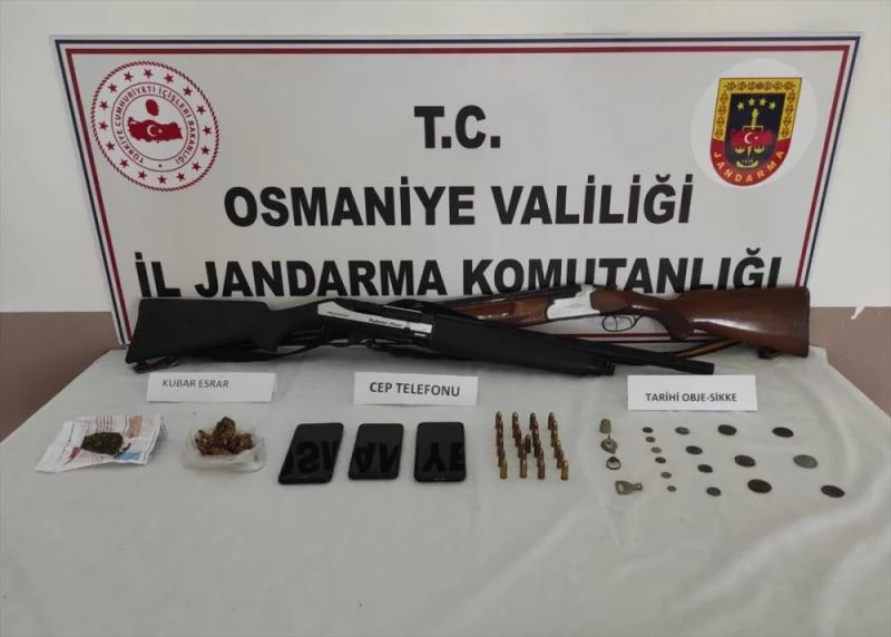 Operasyonda 30 gram esrar, tarihi eser niteligi tasidigi degerlendirilen 20 sikke, 2 ruhsatsiz av tüfegi ile 5 gram kenevir tohumu ele geçirildi, 7 süpheli gözaltina alindi.