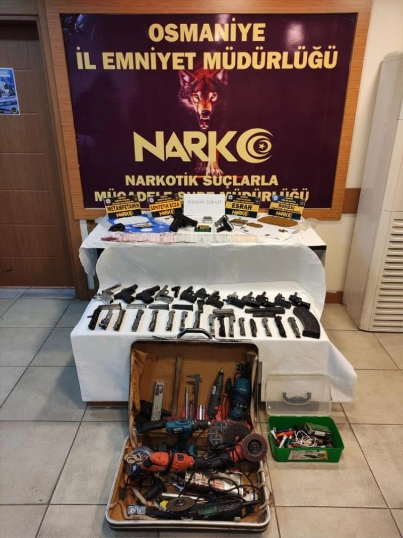 Şüpheli C.K'nin aracında yapılan aramada da 13 tabanca gövdesi, 16 sürgü, 10 şarjör ve kurusıkı tabancayı dönüştürmeye yarayan malzemeler ele geçirildi.