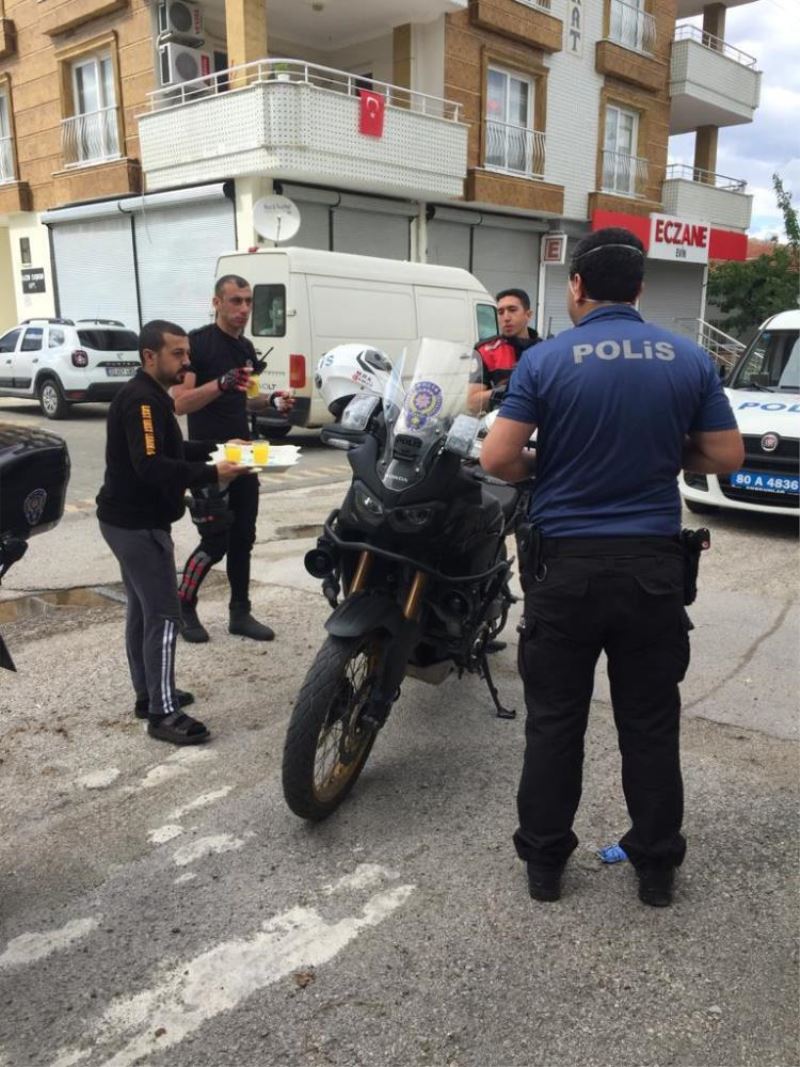 OSMANIYE (AA) - Osmaniye'de, bir vatandasin sosyal medya üzerinden "polislere kömbe ikram etmek istiyorum" çagrisi üzerine harekete geçen polis ekipleri, vatandasin evine giderek ikram edilen kömbeyi yedi ve vatandasa tesekkür etti.