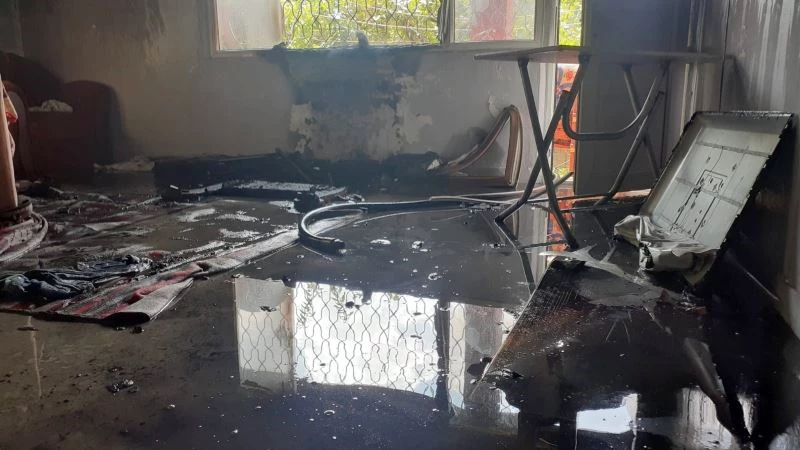 Ekipler tarafından söndürülen evde soğutma çalışmaları devam ederken polis ekipleri yangınla ilgili inceleme başlattı.