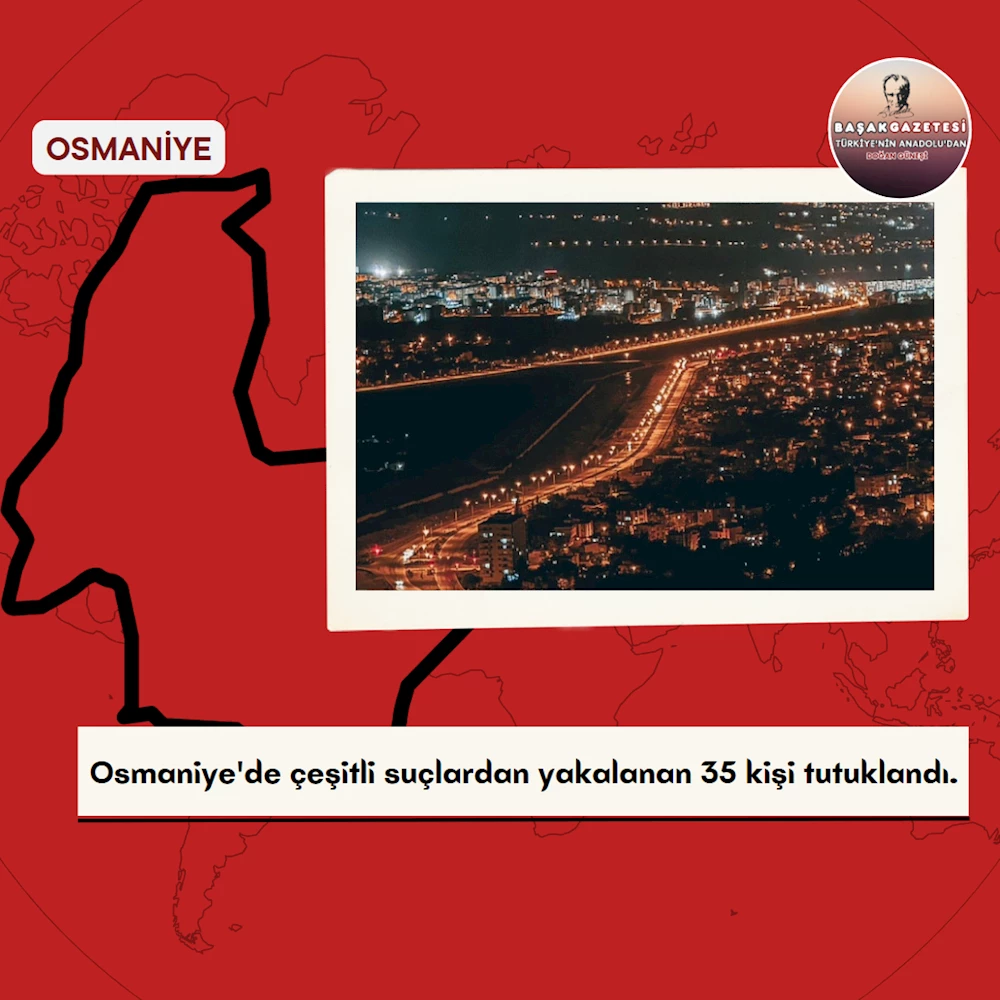 Osmaniye'de İl Emniyet Müdürlüğünce Mart ayında yapılan operasyonlarda 35 kişi tutuklandı. Emniyet Müdürlüğünce yapılan yazılı açıklama aynen şöyle;