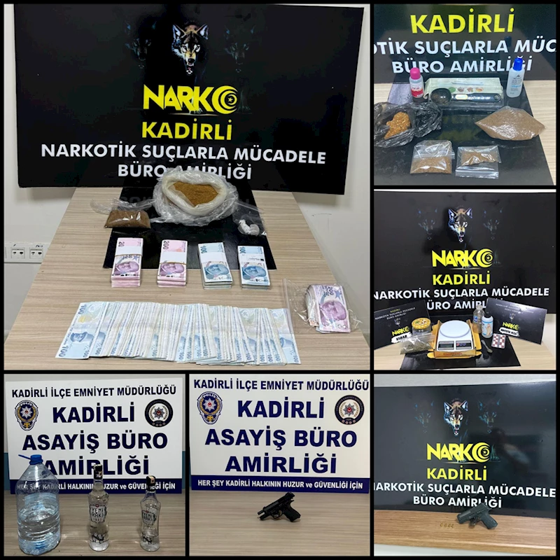 OSMANİYE - Osmaniye'nin Kadirli ilçesinde asayiş uygulamalarında gözaltına alınan 17 şüpheliden 6'sı tutuklandı.