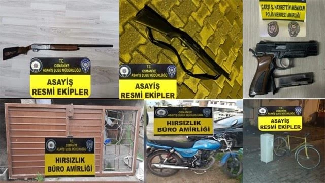 Alınan bilgiye göre, İl Emniyet Müdürlüğü Asayiş Şube Müdürlüğü ekipleri 27 Mart - 03 Nisan tarihleri arasında şehir genelinde farklı noktalarda oluşturulan uygulamalarda, 94 kişiyi yakaladı. Yapılan aramalarda ise 2 adet av tüfeği, 1'er adet tabanca, motosiklet, bisiklet, su sebili, çalıntı demir kapı ele geçirildi.