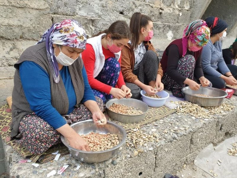 Kadirli'de kadınlar, sokaklar, evler ve evlerin bahçelerinde bir araya gelerek, yer fıstığı tohumlarını ilkbaharda buluşacakları toprak için hazırlanıyor.