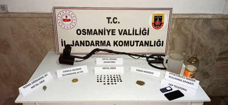 Edinilen bilgiye göre, İl Jandarma Komutanlığı ekipleri Kadirli ilçesinde 3 şahsın tarihi eser kaçakçılığı yaptığı yönünde bilgi aldı. Yapılan fiziki takip sonucunda şahısların evlerine operasyon düzenlendi. Operasyon kapsamında Y.K., A.Ç. ve O.O. isimli şahıslar gözaltına alınırken, ev ve araçlarında yapılan aramalarda 1 adet Roma dönemine ait tarihi obje, 36 adet sikke, 20 gram altın olduğu değerlendirilen sarı renkli materyal ile 20 gram esrar ele geçirildi.