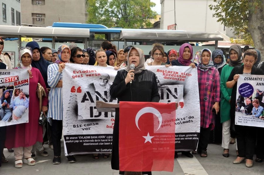 Ülke Genelinde olduğu gibi, Osmaniye'de de Sivil Toplum Kuruluşlarının kadın temsilcileri, evlat nöbeti tutan ailelere destek için eş zamanlı olarak basın açıklamasında bulundular. Çocuklarına kavuşma ümidiyle 3 eylül'de, sorumlu tuttukları HDP'nin Diyarbakır il binası önüne gelen ailelerin başlattığı oturma eylemi devam ederken, Osmaniyeli STK'ların kadın temsilcileri de Diyarbakır annelerine destek için basın açıklaması yaptılar.