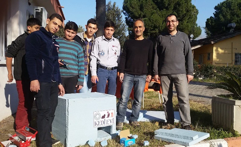 Osmaniye Korkut Ata Doğa Gençlik ve Spor Kulübü üyesi İzciler, sokak kedileri için kedi evi yaptı. İlki Adnan Menderes Bulvarı D 400 kavşağındaki Kulübe ait Çocuk Bilim Evi bahçesine bırakılan kedi evlerinden ilerleyen günlerde yaklaşık 40 tane daha imal edilip şehrin belirli noktalarındaki park ve bahçelere yerleştirileceği kaydedildi. Kulübün yönetim kurulu üyesi Veteriner Hekim Ali Laçinbala, havaların soğumasıyla birlikte zorluk çeken sokak hayvanları için bir proje fikrinin doğduğunu belirterek, "Bu kapsamda kulüp izcileri ve gençlerimizle birlikte dış kaplama köpüklerinden kedi evlerini tasarladık. Hayvan sevgisi ve el becerisiyle birlikte yapılan bu kedi evlerini sokakta yaşayan canlılarımızın kullanımı için belirli noktalara yerleştireceğiz. Ayrıca bunun devamında da yine kopek kulübeleri projemizi de hayata geçirmeyi planlıyoruz." dedi.Soğuk kış günlerinde araçlarını çalıştırırken sürücülere uyarılarda da bulunan Laçinbala, "Bugünlerde soğuk giden hava şartlarından dolayı sokakta kalan canlılarımız sıcak yerler burdukları zaman oralarda dinlenmekte ve uyumaktalar. Kediler de sıcağı çok seven hayvanlar olduğu için araçların tekerleri yada motor kısmına girmekteler. Araç sahiplerimiz araçlarını çalıştırmadan veya hareket ettirmeden önce mutlaka lastik üzerlerini yada motor kısmını kontrol etsinler. Kontrol edilmeden çalıştırılan araçlar hem canlılarımıza hem de araçlarımıza zarar büyük verebilir, bu konuda biraz dikkatli olalım" dedi. Öte yandan İzci Lideri Enes Bahadır Özcan ise kulüp üyeleri olarak bu kulübelerin sokak kedilerine birer sıcak yuva olması için yaptıklarını ve desteklediklerini söyledi.
