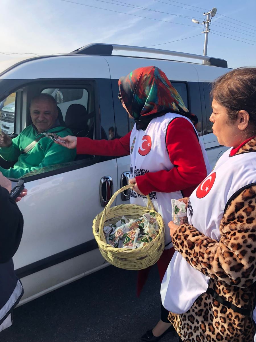 Ardından Aksu’da Ankara-Antalya polis yol kontrol noktasına geçen dernek üyeleri burada geçen araçlara 5 bin paket Osmaniye yer fıstığı ikram etti.