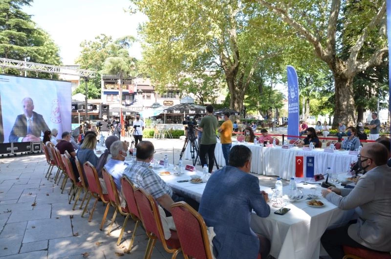 Sempozyuma video konferansla bağlanan Kültür ve Turizm Bakan Yardımcısı Nadir Alpaslan da Osmanlı Devleti’nin kurulduğu Bursa’nın kadim bir şehir olduğunu söyledi. Sempozyumun Bursa’nın tarihi değerlerinin ihya edilerek, tekrar kente kazandırılmasına vesile olacağını dile getiren Alpaslan, "Bey Sarayı’nın yeniden ihya edilmesi, hemen yanındaki Orhan Gazi Camisi’nin ihya edilmesi, Kent meydan düzenlemeleri ve diğer çalışmalarla, tarihi yapıların ihyasıyla Bursa, hanları, hamamlarıyla gerçekten kendine yakışır bir dokuya kavuşacak. Bu çalışmaları biz de Bakanlık olarak takdirle izliyoruz ve ’Bu çalışmalara nasıl katkı yapabiliriz’ bunların çalışmaları içindeyiz" dedi.