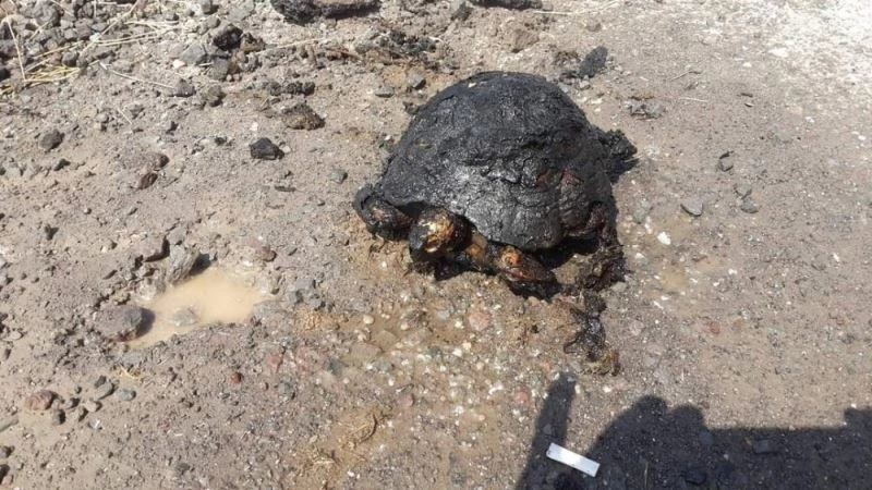 Kayseri’de meydana gelen ot yangınından kaçamayan kaplumbağa telef oldu.