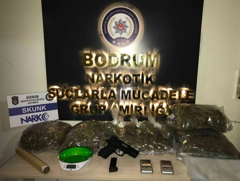 Muğla’nın Bodrum ilçesinde 4.2 kilogram uyuşturucu ile bir adet ruhsatsız tabancanın ele geçirildiği operasyonda 1 kişi tutuklandı.