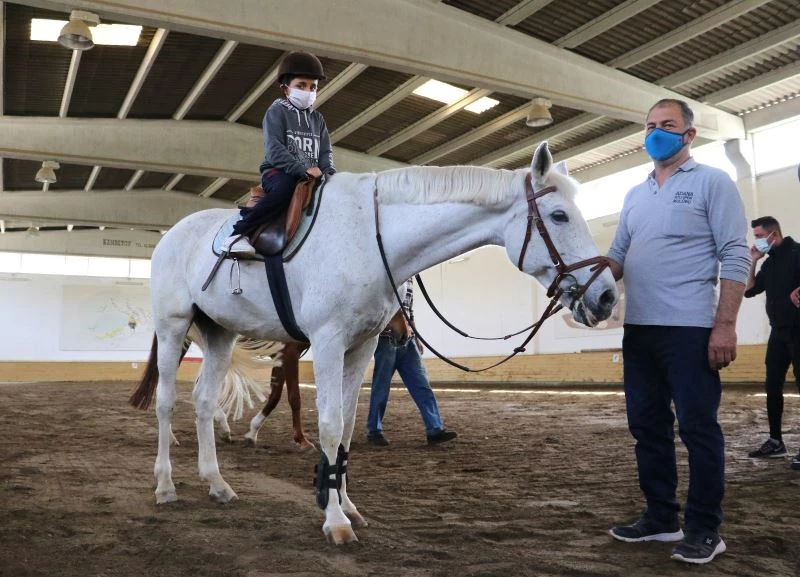 Adana’da otizmli çocuklar atla terapi sayesinde gönüllerince bir gün geçirdi. At binip tenis oynayan çocukların mutluluğu gözlerinden okundu.