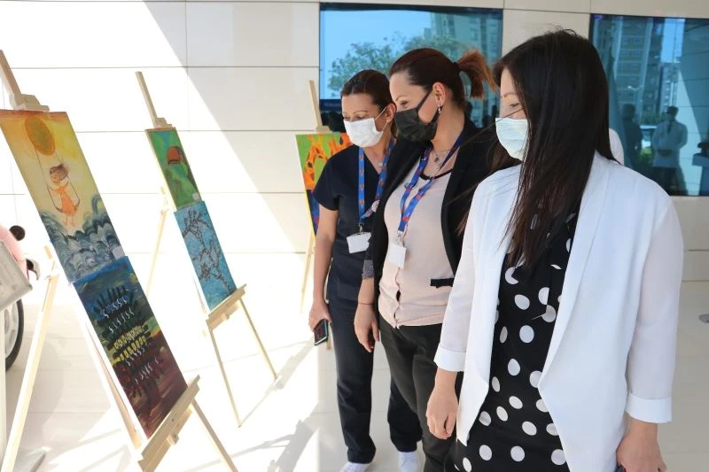 Adana’da otizmli çocuklar Özel Medline Adana Hastanesi bahçesinde resim sergisi açtı.