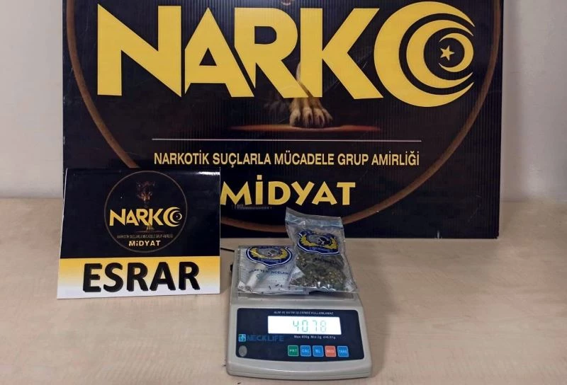 Midyat Cumhuriyet Başsavcılığınca yürütülmekte olan soruşturmaya esas olmak üzere adli makamların talimatı ile harekete geçen, Midyat İlçe Emniyet Müdürlüğü Narkotik Suçlarla Mücadele Grup Amirliği ekiplerince bir oto yıkamada, Ş.E.’nin uyuşturucu madde sattığını belirledi. Yapılan çalışmalar sonucu şüpheli şahsın iş yerinde ve ikametinde kullanıma hazır halde ayrı ayrı kullanıma hazır toplamda 142,84 gram esrar maddesi ele geçirildi.