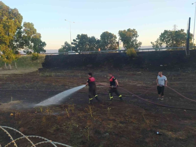 Aydın-İzmir Otobanı kenarında bulunan arazide çıkan yangın vatandaşları panikletti.
