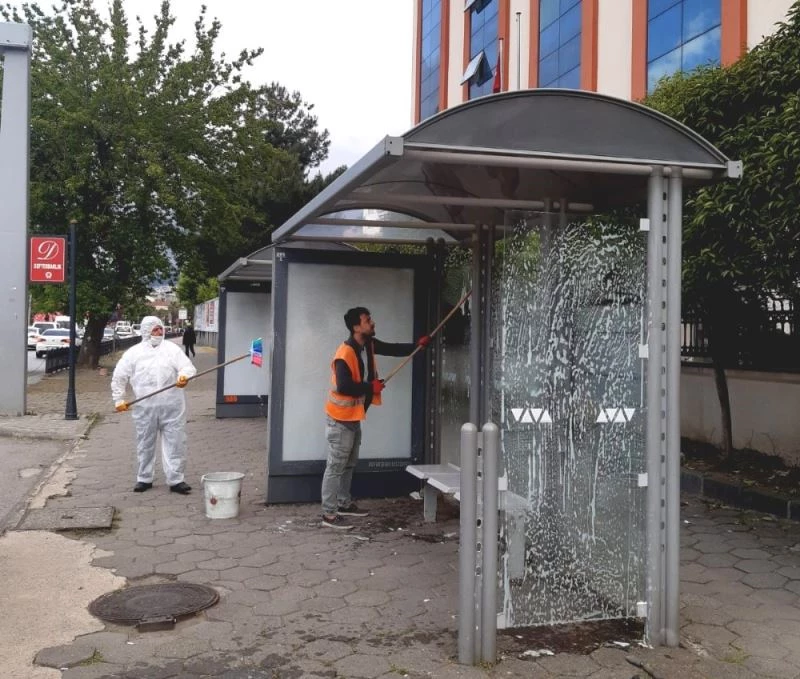 Haftanın ilk gününde vatandaşların yoğun olarak kullanacağı otobüs duraklarının belirli periyotlarla temizliğinin yapılmaya devam edeceği ifade edildi.