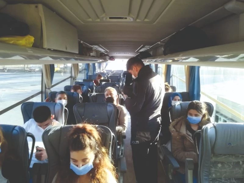 Çorum’un Sungurlu ilçesinde polis ekiplerince, şehirlerarası yolcu otobüslerinde korona virüs tedbirlerine yönelik HES kodu ve maske denetimi gerçekleştirildi.