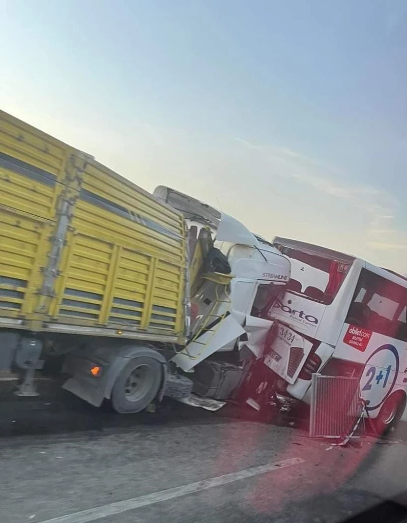 Otobüs ve tırların karıştığı zincirleme kazada 1 kişi öldü, 4 kişi yaralandı