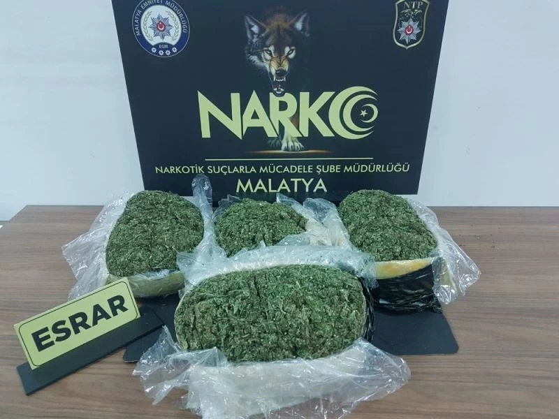 Edinilen bilgiye göre, Malatya Emniyet Müdürlüğü Narkotik Suçlarla Mücadele Şube Müdürlüğü görevlilerince Elazığ yolu üzerinde bulunan uygulama noktasında arama gerçekleştirildi. Yapılan çalışmalar sonucu bir otobüs firmasında yolculuk yapan K.T. isimli şahsın valizinde yapılan aramada 4 kilo 40 gram kubar esrar maddesi ele geçirildi. Gözaltına alınan şüpheli hakkında TCK 188. maddesi kapsamında yasal işlem yapıldı.