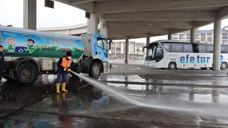 şehirlerarası otobüs terminalinde detaylı temizlik ve dezenfekte çalışması yaptı.