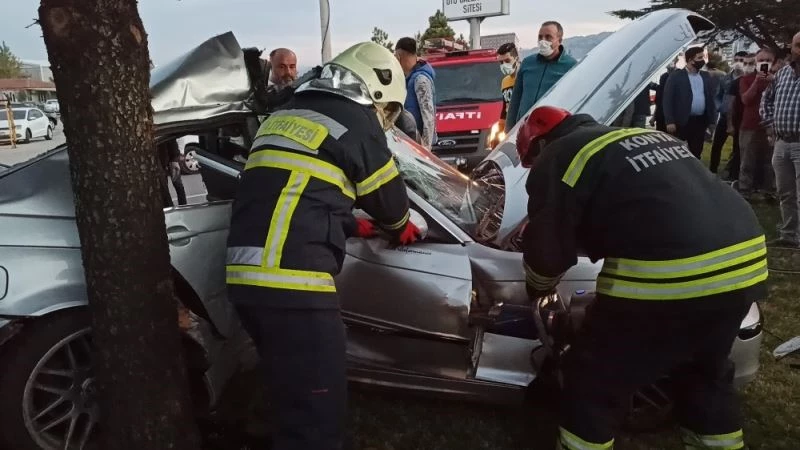 Konya’nın Seydişehir ilçesinde kontrolden çıkarak refüjdeki ağaca çarpan otomobildeki 2 kişi yaralandı. Otomobilde sıkışan yaralı itfaiye ekipleri tarafından kurtarıldı.
