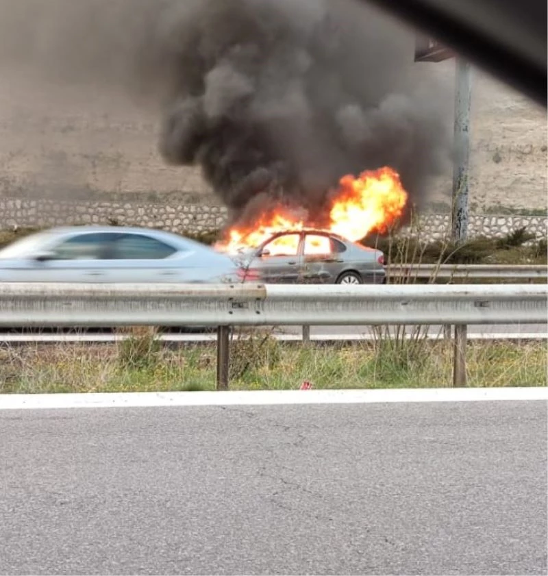 Adana’da otoyol üzerinde bir otomobil alev alev yandı.