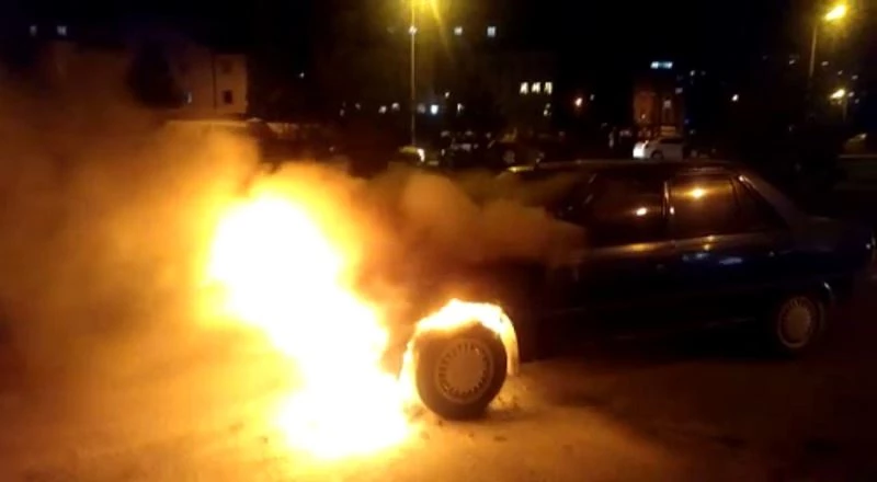 Otomobil alev alev yandı, o anlar kameraya yansıdı