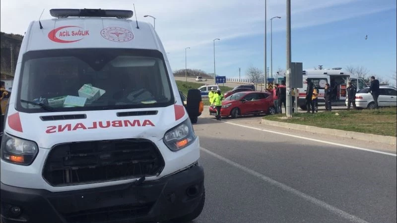 Sinop’ta kavşaktan dönmeye çalışan otomobil, seyir halindeki ambulansla çarpıştı. Kazada 1 kişi yaralandı.