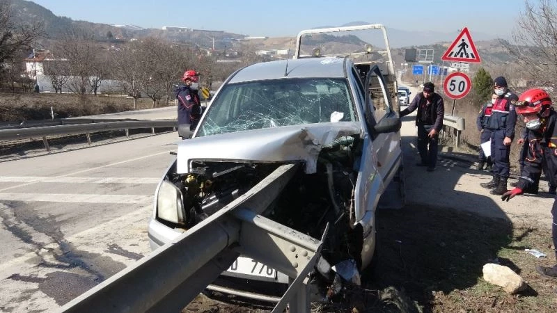 Otomobil bariyere ok gibi saplandı, sürücü ölümden döndü