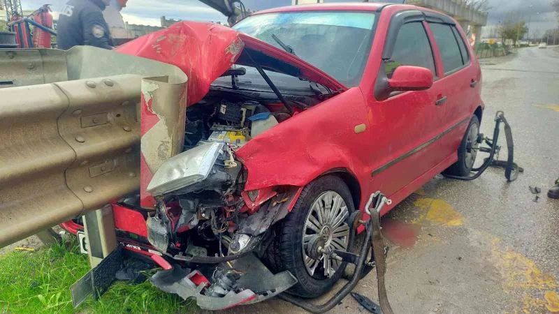 Otomobil bariyerlere ok gibi saplandı, ölümden döndüler
