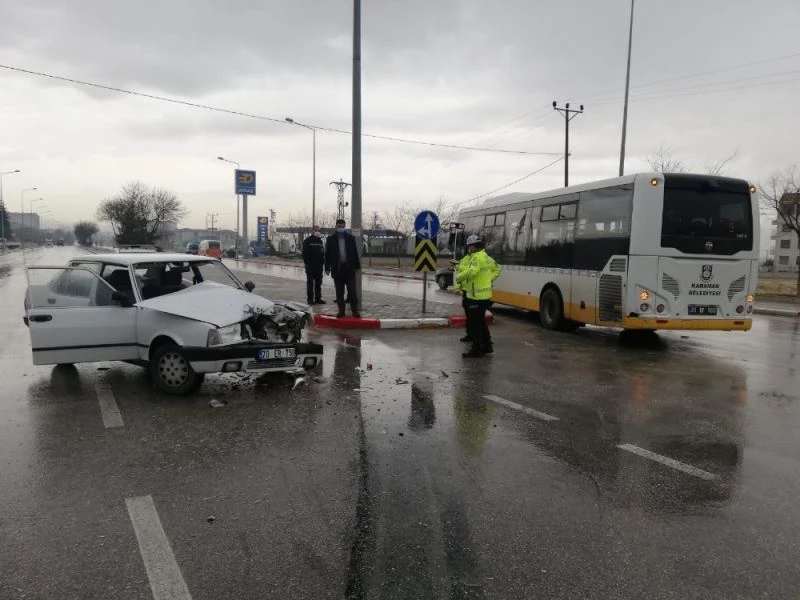 Karaman’da otomobilin belediyeye ait yolcu otobüsüne çarpması sonucu 2 kişi yaralandı.