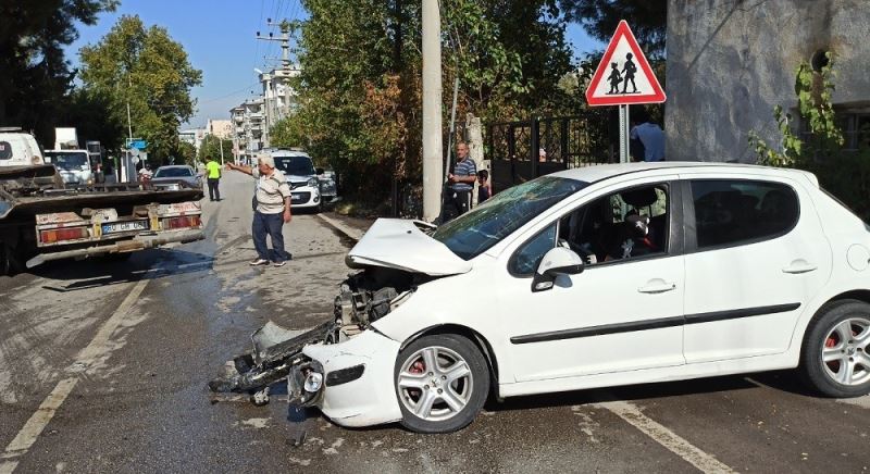 Osmaniye’de beton elektrik direğine çarpan otomobilde bulunan 3 kişi yaralandı.