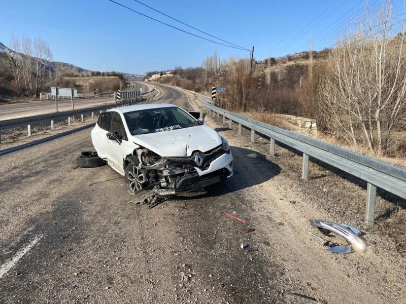Gürün’de sürücünün direksiyon hakimiyetini kaybederek çöp bidonuna çarpması sonucu meydana gelen kazada 3 kişi yaralandı .