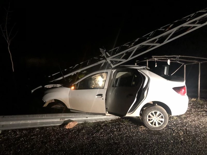 Elazığ’da otomobilin çarptığı aydınlatma direği, aracın üzerine devirdi, sürücü yaralandı.