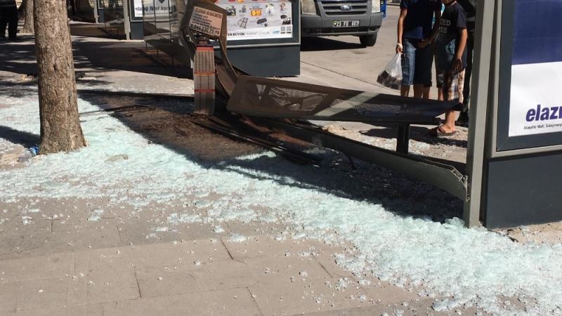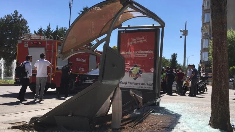 Elazığ’da sürücüsünün direksiyon hakimiyetini kaybettiği otomobil, otobüs durağına girdi. Yarısı yıkılan durakta kimsenin olmaması faciayı önledi.