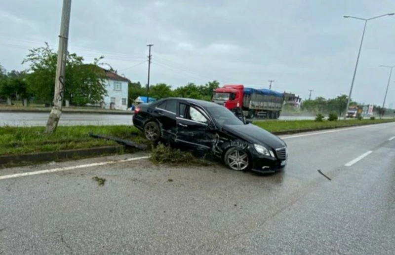 Samsun’da yoldan çıkan otomobilin beton duvara çarpıp savrularak refüje çıkması sonucu meydana gelen trafik kazasında 1 kişi yaralandı.