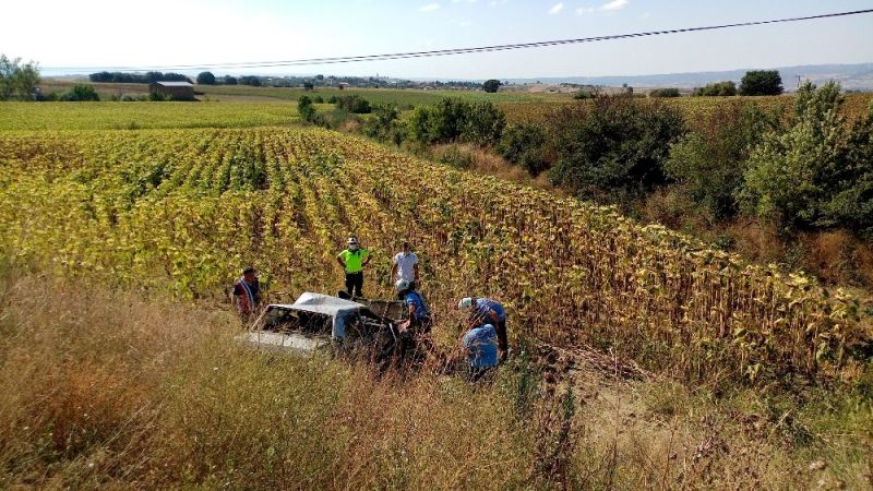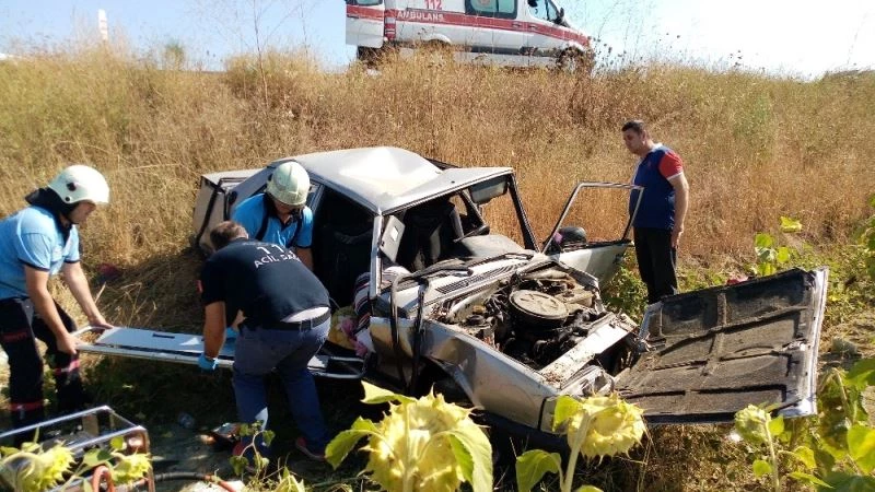Tarlaya uçan otomobil hurdaya dönerken, sürücü ve araçta yolcu olarak bulunan Kıymet Bulut ağır yaralandı.