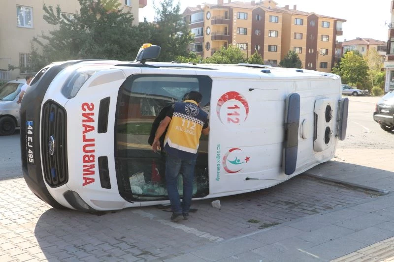 Otomobil ile çarpışan ambulans yan yattı: 4 yaralı