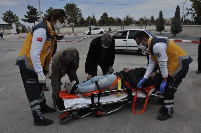 Karaman’da otomobil ile çarpışan motosikletin sürücüsü genç yola savrularak yaralandı.