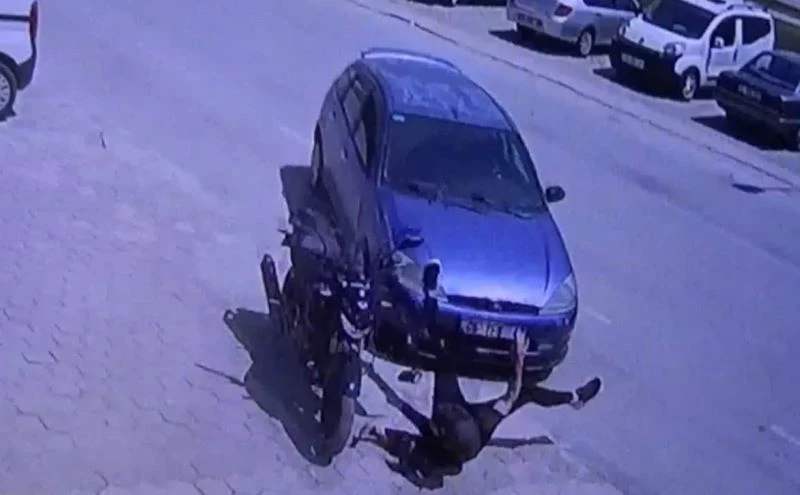 Otomobil ile çarpışan motosikletin sürücüsü böyle havalandı