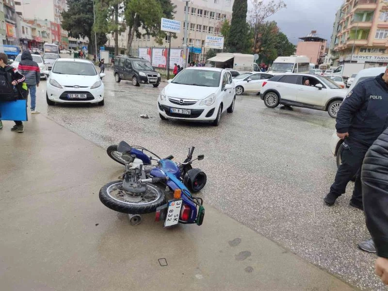 Edinilen bilgiye göre, Atatürk Mahallesinde Münteha K’nin kullandığı 31 Y 9178 plakalı otomobil ile Alper C. idaresindeki 31 SK 832 motosiklet çarpıştı. Kazada motosiklet sürücüsü yaralandı.