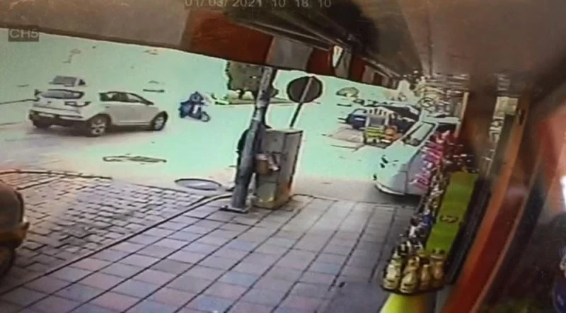 Bursa’nın İnegöl ilçesinde elektrikli bisiklet ile otomobilin çarpıştığı kazada bir kişi yaralandı. Kaza anı ise saniye saniye güvenlik kamerasına yansıdı.