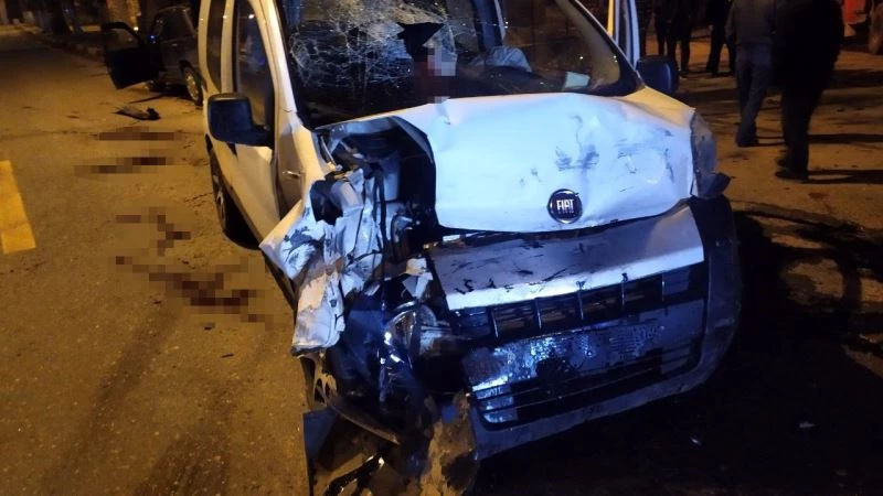 Otomobil ile hafif ticari aracın çarpıştığı kaza kamerada