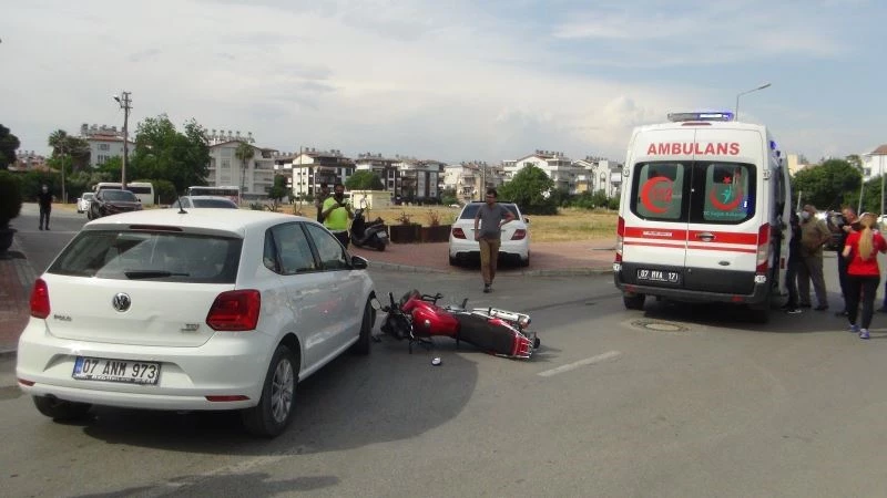 Antalya’nın Manavgat ilçesinde otomobille motosikletin çarpışması sonucu meydana gelen kazada motosiklet sürücüsü yaralandı.