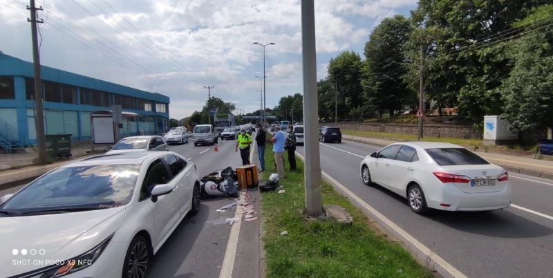 Kaza, Ereğli Akçakoca yolu üzeri Devrek Yolu Caddesinde meydana geldi. Edinilen bilgilere göre, Niyazi B. (67) idaresindeki 67 ABY 682 plakalı Toyota marka otomobile, Yaşar Mert P. (19) idaresindeki 67 ABU 967 plakalı motosiklet çarptı. Çarpmanın etkisiyle savrulan motosiklet sürücüsü yaralandı. Kaza sonrası 112 Acil Çağrı Merkezi’ne ihbarda bulunuldu. Olay yerine gelen sağlık ekipleri yaralı sürücüyü ambulansa alarak Kdz. Ereğli Devlet Hastanesi’ne kaldırdı. Polis ekipleri kaza ile ilgili otomobil sürücüsü Niyazi B.’yi ifadesini almak üzere İlçe Emniyet Müdürlüğü’ne götürdü. Araçların yoldan kaldırılması sonrası trafik yeniden normale döndü. Yaralanan moto kuryenin hastanedeki tedavisi sürerken, kaza ile ilgili soruşturma başlatıldı.