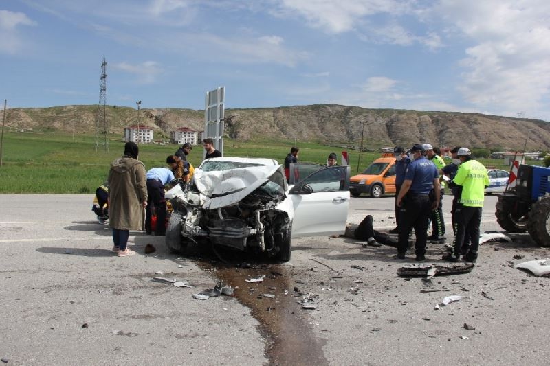 Edinilen bilgiye göre Denizli’den Ağrı’ya gitmek üzere yola çıkan C. A. (46) yönetimindeki 20 ACR 611 plakalı otomobil Sivas-Erzincan Karayolu Zara kavşağında U dönüşü yapmak isteyen C. K. (65) yönetimindeki 58 TA 104 plakalı traktörle çarpıştı. Çarpışmanın etkisi ile kazada araç sürücüleri ile birlikte otomobilde bulunan M.A. (38), İ.A. (48) ile C. A. (54) yaralandı. Kazanın haber verilmesi üzerine olay yerine sağlık ve polis ekipleri sevk edildi. Zara Devlet Hastanesi’ne kaldırılan yaralılardan ikisi ilk tedavilerinin ardından Sivas’a sevk edildi.