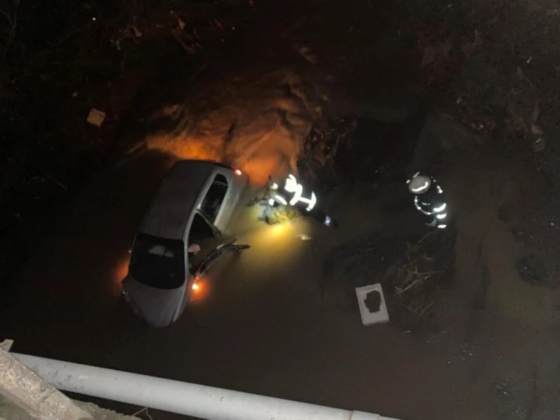 Otomobil ile uçtuğu derede telefonla yardım istedi